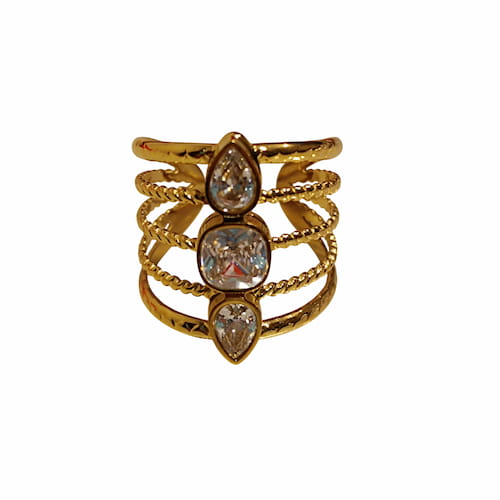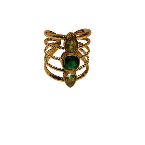 Bague Ambre en acier inoxydable et ajustable avec zircon, deux couleurs disponibles : vert ou blanc.